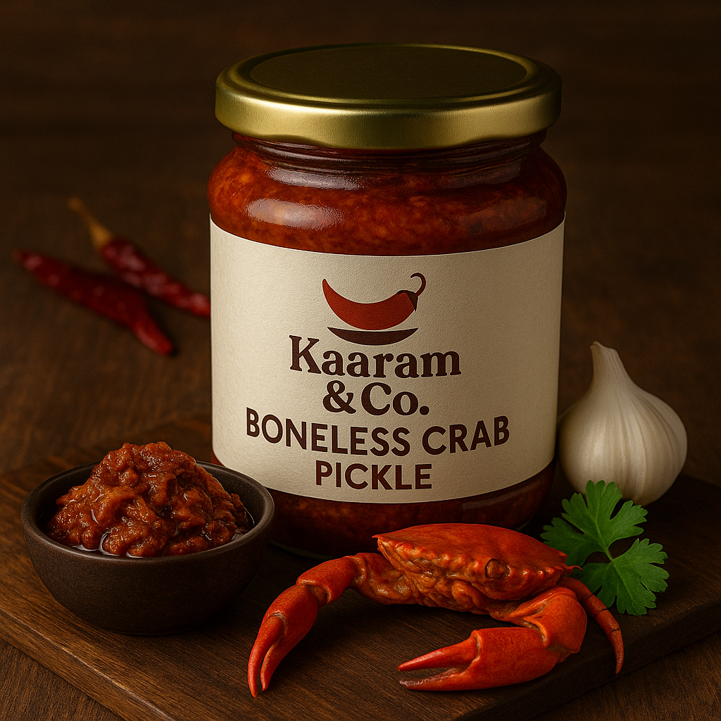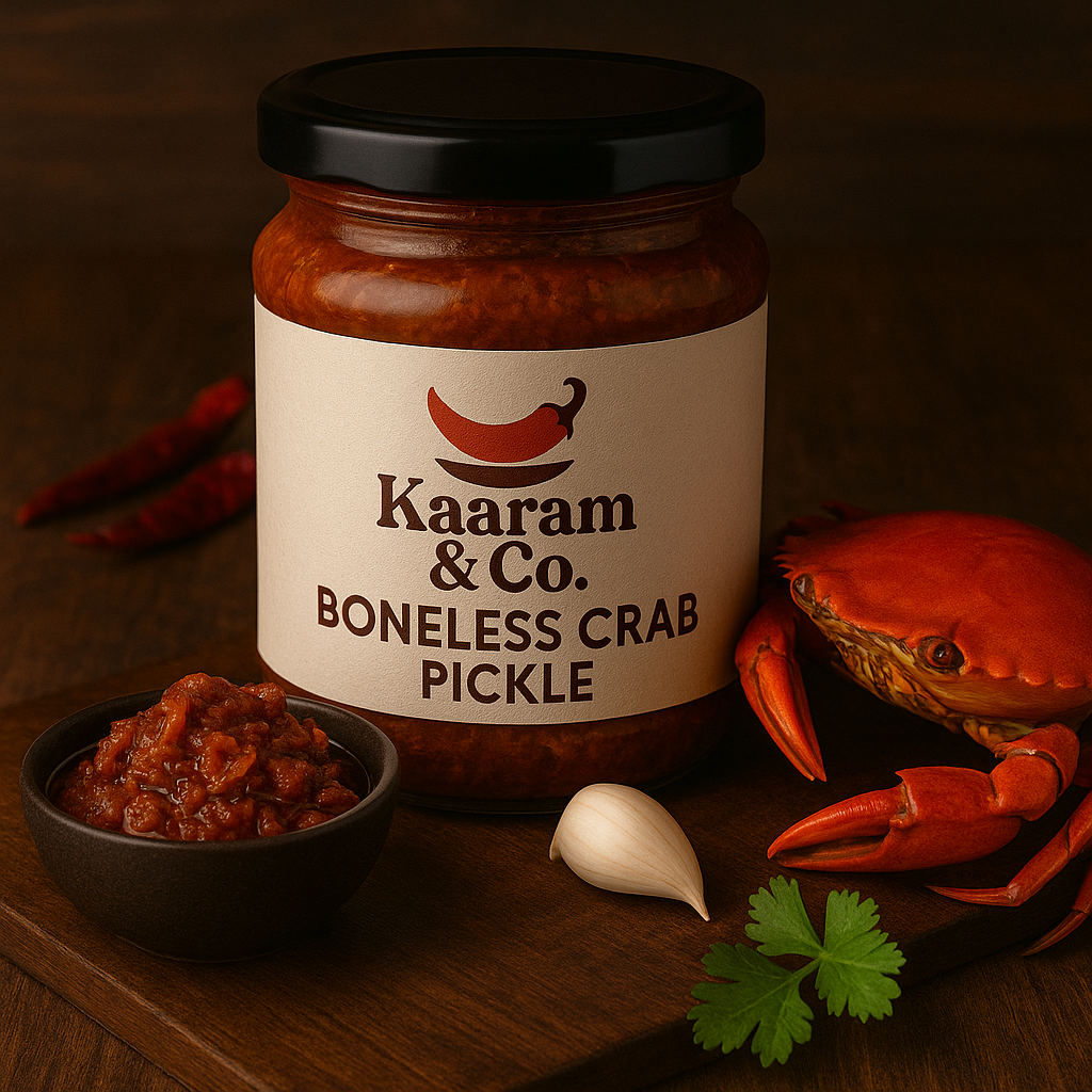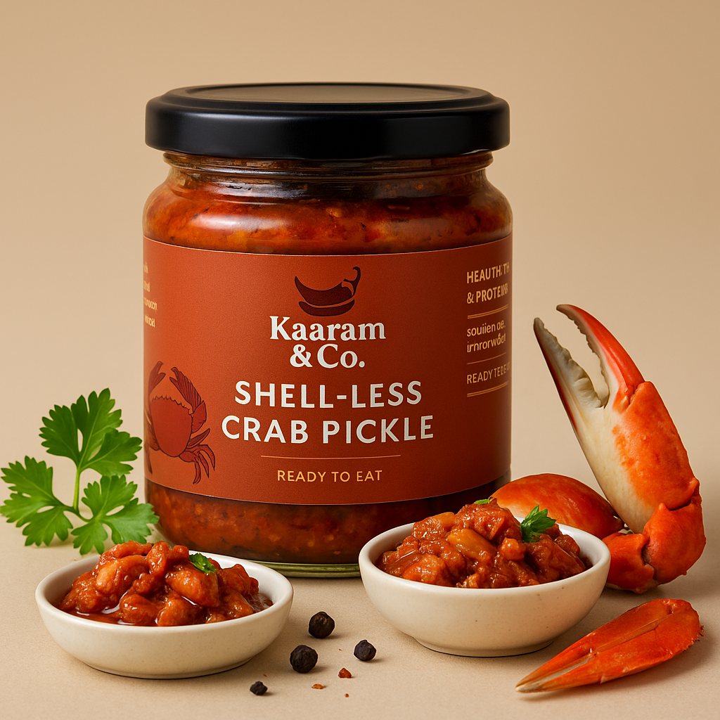 At Kaaram & Co., we bring together the bold spirit of traditional home pickling and the precision of food science. Our ShellLess Crab Pickle is a premium seafood indulgence made for those who crave bold, briny flavors with clean nutrition.